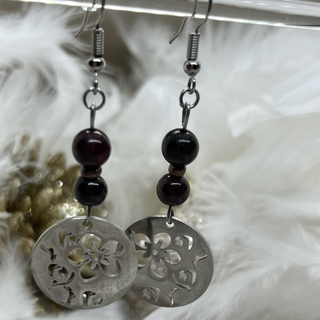 Perles grenat , boucles en acier inoxydable