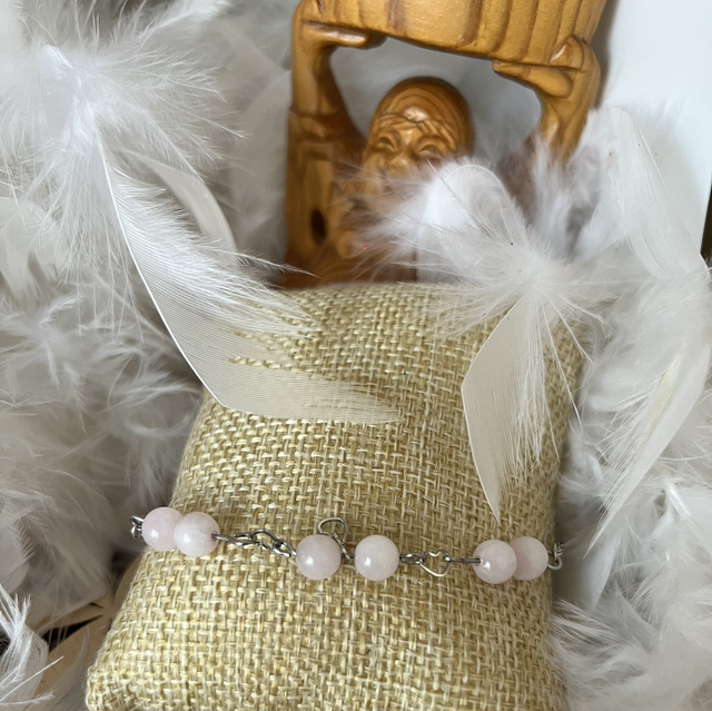Bracelet chaînette quartz rose 6mm